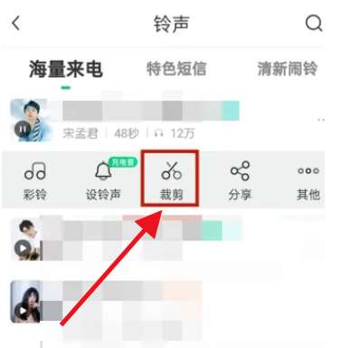 4、选择铃声后,点击裁剪。