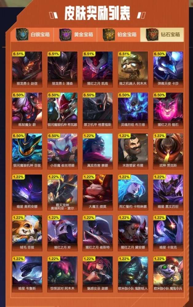 英雄联盟手游战斗之夜宝箱皮肤有哪些?战斗之夜是英雄联盟手游近期上线的一个福利活动,有小伙伴想知道战斗之夜的皮肤宝箱都有哪些皮肤,下面为大家介绍一下。
