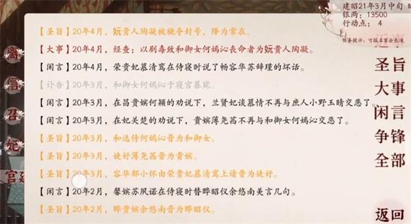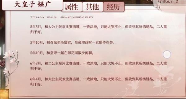 等所有大臣都结识成功并且支持你的皇子后,他们不一定会提议立储,这个时候要跟他们增进感情。具体办法是:清晨宣政殿偶遇打招呼;关怀;接济,其他几个选项慎选,稍有不慎会掉好感!