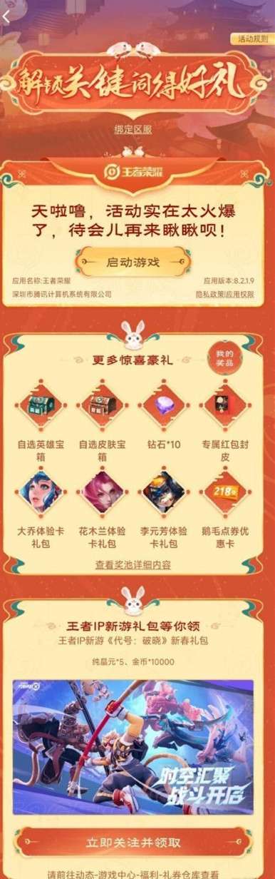 好啦~以上就是2023解锁关键词得好礼活动的相关玩法说明啦~看完,你是不是就比较清楚王者荣耀解锁关键词活动怎么玩了呀~