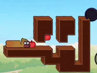 1、先吃掉苹果向右移动, 然后一 直向上移动,然后我们会直着掉下来