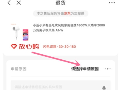 3、点击退货,选择申请原因,提交申请。退货完成后,会收到京东平台的退款。