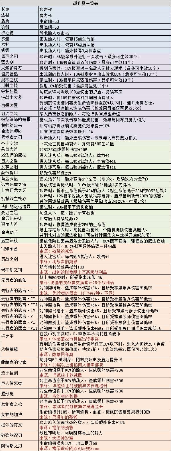 3.普通和稀有战利品主要就是刷怪和开箱子出,至高战利品主要2个出处boss层箱子和战神雕像捐稀有战利品换,特殊战利品有固定出处,来源看下边的表: