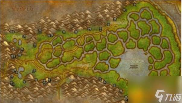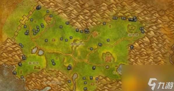下面图片之中所有的小黄点就是金棘草在该地图之中分布刷新点,小伙伴们直接去按照黄点分布的位置安排路线进行采集即可。