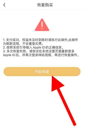 第四步:进入恢复购买,点击开始恢复,进行恢复。