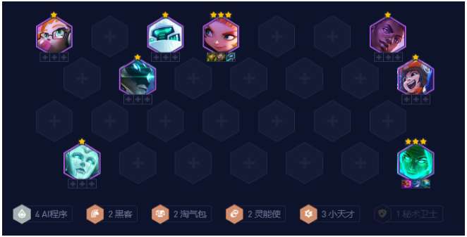 超级机甲德阵容这热热度与热补丁之前比大幅度提升,通常一局1-2家同行,独家的时候比较多,但其吃分与吃鸡依然较为稳定,属于胡就能玩的阵容。哪怕是有同行的时候其前四率也比较高,很少出现7、8名出局的时候,大家在装备与棋子比较胡的时候就可用这套阵容上分。