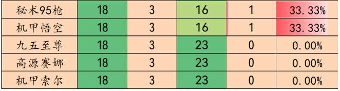 AI乐芙兰这周吃分场次9场,吃分排名第12名;吃鸡场次7场,吃鸡排名第3名。这套阵容的吃鸡前四占比是这次统计中最高的达到了惊人的77.78%。