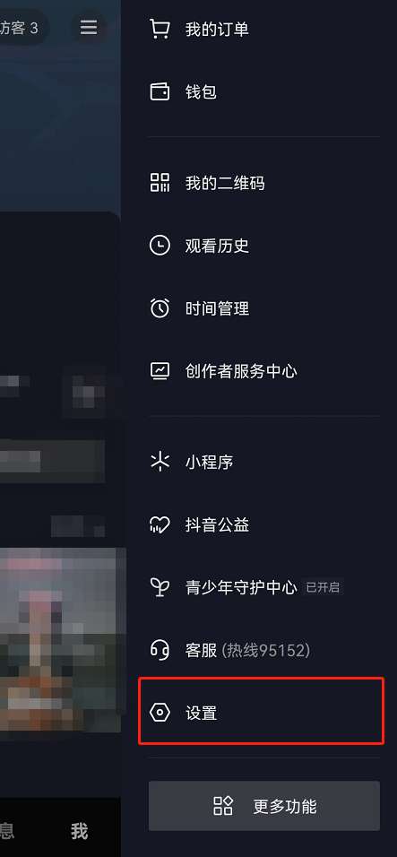 1、在抖音我的页面点击右上角【三】。
