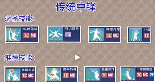传统中锋技能搭配推荐: