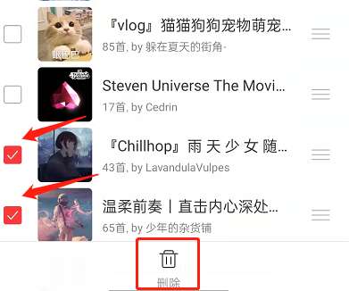 3、勾选需要删除的歌单,点击删除即可。