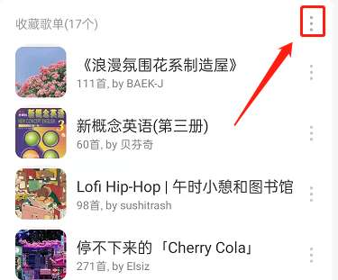 1、打开网易云音乐,找到我的歌单或者收藏的歌单,找到三个点图标点击。