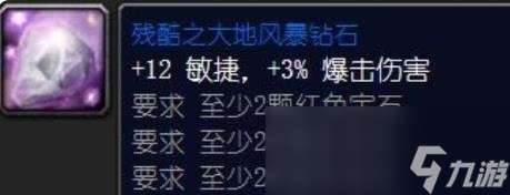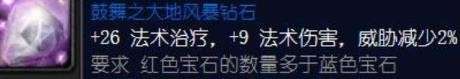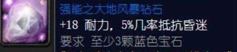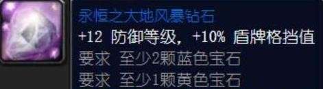 上述两个多彩宝石适用职业及场景:战士T、防骑、熊T中前期也只有坚韧之大地风暴钻石这一颗多彩宝石可选,后期等破碎残阳声望开了那肯定是首选永恒之大地风暴钻石。具体的效果生效条件见各自的图片描述,对于T来说不难达成。