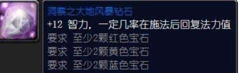 补充说明:此多彩宝石除了提供12点智力的常驻属性加成外,另外一条效果是施法时有3%的几率回复300点法力值,无内置CD。