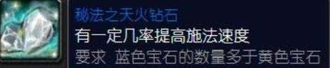 适用职业及场景:少数法系DPS中后期的PVE可能会采用,原因是这颗宝石提供的效果为施法时有3%的几率获得320点法术急速,持续6秒。跟上面那颗雷鸣之天火钻石一样,年代久远现在尚无人实锤是否有内置CD。感觉是有的吧,要是没有术士不是要上天?本来就够强了,再整这么个多彩宝石那其他职业玩个锤子。