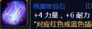 如上图所示,这颗名为洞察之大地风暴钻石的多彩宝石生效条件是你全身装备所镶嵌的宝石最少要红、黄、蓝三色宝石各两个。需要指出的是,一些双色宝石也可以满足这个条件,比如下面这个统御夜目石: