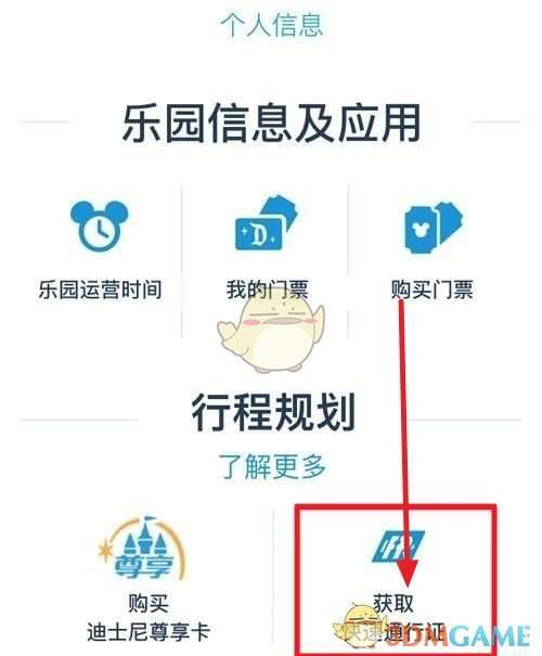 1、注册账号并登录上海迪士尼度假区app,通过个人信息界面下方【行程规划】中找到获取快速通行证入口。需要通过扫描门票上的二维码来绑定自己的门票信息。之后才能够进行领取。