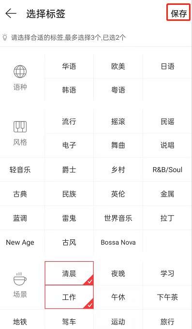 4、选择好标签,最多可以选择三个,选好之后点击保存即可。