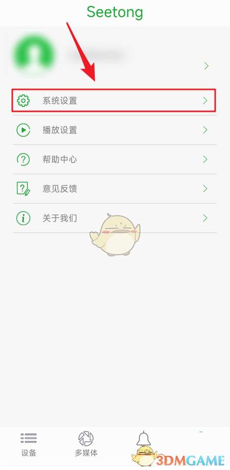 1、打开seetong后,在【我的】界面上点击【系统设置】选项。