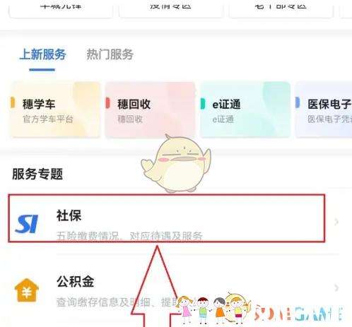 1、打开“社保业务”主页面:打开“穗好办”App,在应用主页的“服务专题”栏目点击“社保”栏目。