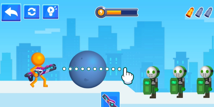 在轰炸大师中,玩家需要操纵一个与众不同的小人,这个小人是一名特种兵,它身上有三种攻击武器,玩家需要在三种武器间自由的切换,帮助小人击败敌人,获得最终游戏的胜利。