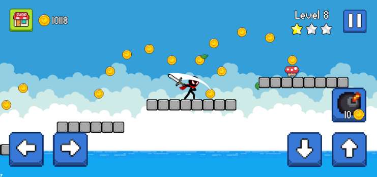 游戏中的场景都是非常逼真的,用户朋友在闯关时可以尽情享受到格斗闯关的乐趣。在路上还有一系列的跳跃陷阱,用户朋友需要点击小人,控制他向前跳跃,这样就能闪避开陷阱继续前进了。