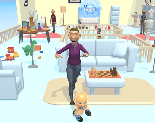 1、与虚拟家庭生活模拟器有关的多个初中婴儿的顽皮行为。