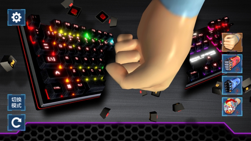 3、面对着花样百出的各种彩色灯光键盘,寻找合适自己的操作方式不断的破坏。