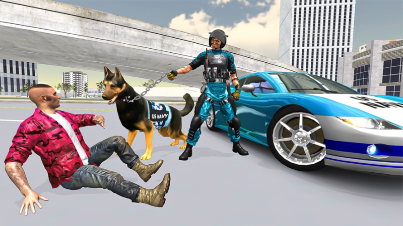 在美国警察海军犬犯罪游戏中你将扮演一名优秀的警犬,你可以与你的海军警察一起去完成各种有挑战性的任务。将通缉犯、窃贼以及非法人员全部逮捕,维护城市的和平吧!