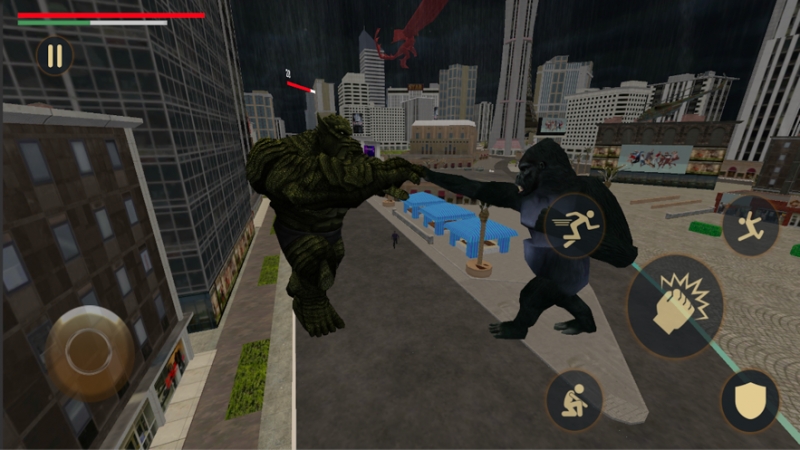 在Kaiju Rush大猩猩对哥斯拉游戏中你将扮演一只巨型大猩猩,别看自己样貌吓人你可是这座城市中的英雄。你要利用自己的力量阻止怪物攻击城市,保护百姓们的安全你的职责。