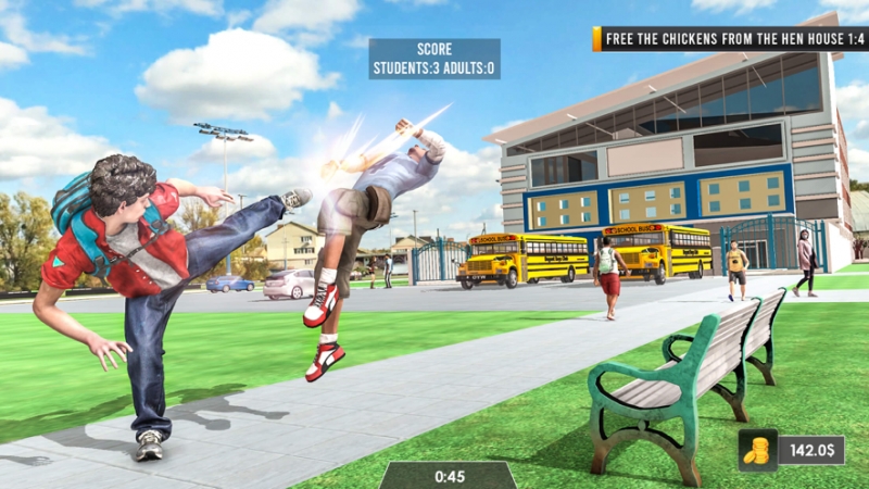 1、非常真实的格斗玩法,自由施展你的技能,打败那些学生们。
