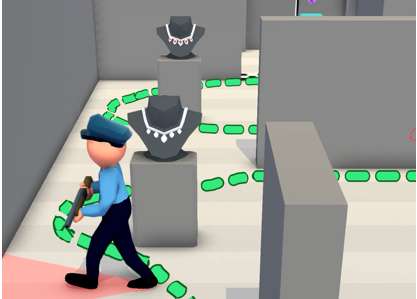游戏的玩法非常简单,用户只要在关卡中画出主角闪避的路线就可以了。在游戏中还有很多的建筑物,利用这些建筑物,玩家也能顺利躲避巡逻,拿到宝石。