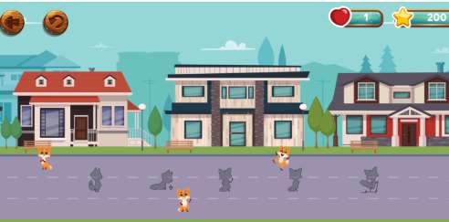 游戏分为三条车道,上面和下面两条车道将是不同形状的狐狸站立,