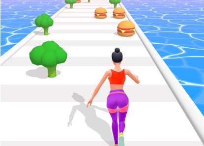 一名健身达人正在Twerk Run 3D这款游戏中进行各种各样的冒险闯关,赛道上有各式各样的美食,玩家的任务就是抵御这些美食的诱惑,收集健康的食物,然后顺利到达终点即可。