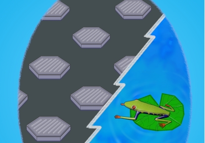 在Pad Hopper中一个小球在不断向前前进着,在这里玩家需要控制它前进的方向,让它不要接触火球,如果接触了火球,你的小球也会被蒸发掉,一开始你有一层护盾,护盾消失玩家就需要选择其他路径。