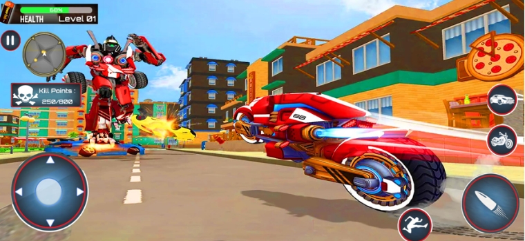 机器人改造汽车游戏,您可以通过单击按钮将您不可思议的机器人变成飞行自行车或飞行汽车。