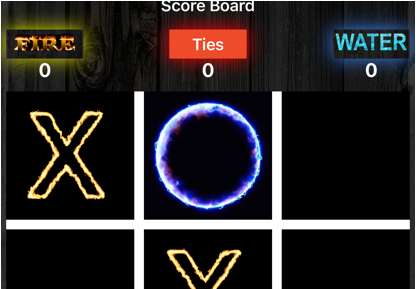 是由两名玩家在一个3 * 3的格子上玩的游戏,他们交替地将X (FIRE)和O (WATER)标记放在格子的9个空格中的一个。