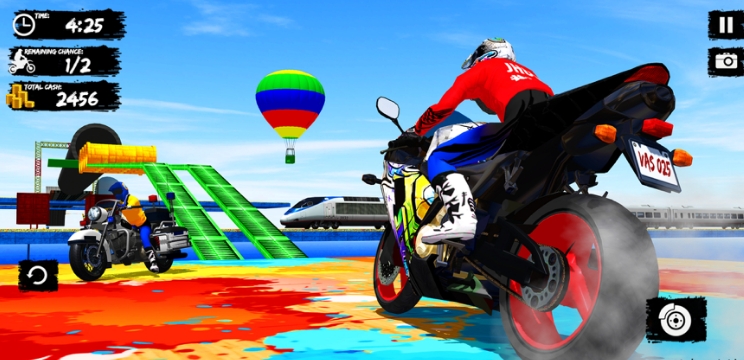 想体会惊险刺激的冒险活动,大家来Mega Ramp Bike Stunt Race 3D体会一下别样的赛事。这里玩家需要驾驶各种各样的摩托,前方是险象环生的赛道,小伙伴需要尽力避开障碍,驶向终点。