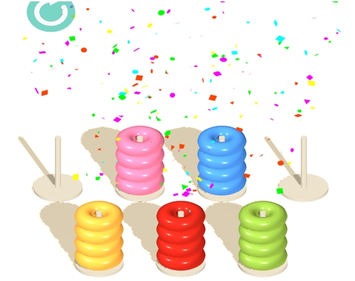 Hoop Puzzle游戏采用排序的玩法,在这里每个柱子上都放置着不同颜色的圆环,你要通过不断移动的方式将相同颜色的圆环放在一个柱子上。要注意过程中千万不要着急,多多尝试相信你一定可以成功的。