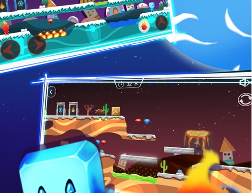 游戏采用了横版的界面更加方便玩家的游戏操作,要注意红色小人只能接触火,蓝色小人只能接触水。这里为你精心设计了超多关卡,每一关都为你准备了不同的场景以及难度。