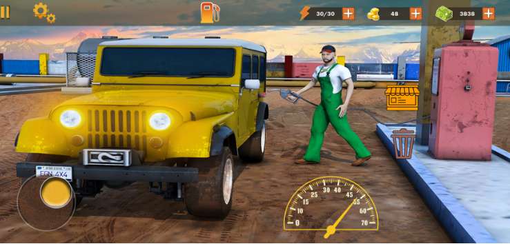 游戏是开放的,玩家在关卡中享有绝对的自由,你可以在加油站自由走动,进行各种冒险。还有很多的小道具可供玩家解锁,解锁后,你可以升级自己的工具,这样就能更快速的完成加油了。