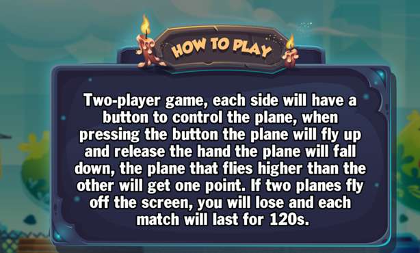 你需要试着飞得比对手高,降落在敌机前方,然后敌机会爆炸,你会赢,屏幕两侧会随机出现子弹或来袭的导弹,