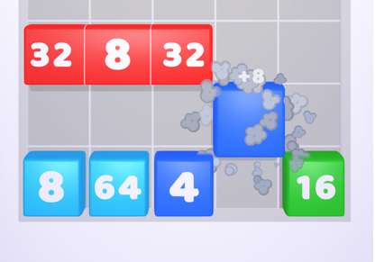 从物理上落下,当它接触到相同数量的块时,它们将合并成一个值更大的块。