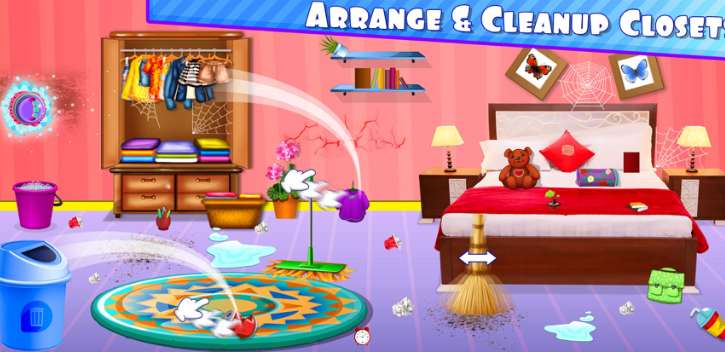 你的整个娃娃屋都乱七八糟了,现在你需要打扫房子和修理房子。