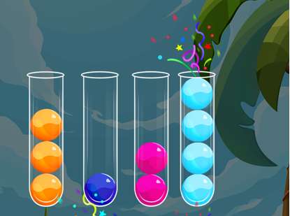 游戏很简单,你只需要把相同颜色的球放在不同的罐子里就可以获胜。