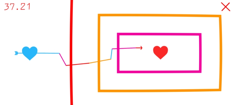 在Trace of Love中有两颗心,玩家需要用一条连线将这两颗心进行连接,连线最多只能有一个转折。喜欢锻炼思维的玩家可以来这里进行一下挑战,看看自己能不能完成连接通关。