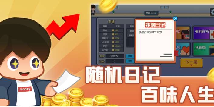 在游戏中有很多的随机冒险,玩家可以体会不被定性的人生。还有很多的投资,玩家可以根据自己的判断来选择相应的投资项目,然后完成投资即可获得丰厚的奖励。