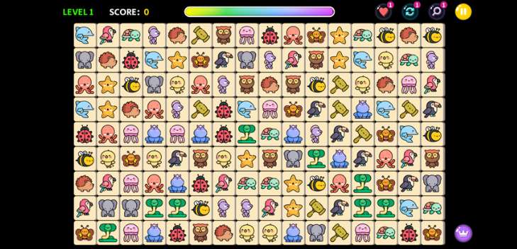 你觉得自己的反应能力和观察能力如何?如果对自己的能力有信心的话,不妨来Onet Connect Animal这款游戏挑战一下吧。在游戏中有很多的卡片,玩家需要点击对应的卡片,这样卡片就能完成消除。