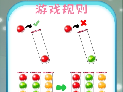 各种彩虹小球被装在试管里,你能将这些小球转换顺序,让一个试管里只有一种颜色吗?来彩虹球球排序试试吧!在这里有海量的关卡,玩家在探索时不用担心枯燥,还可以随时撤销重启。