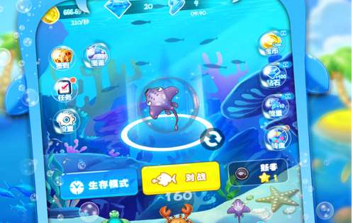 在大鱼吃小鱼这款游戏中,玩家将会化身一条在水族馆里的鱼,你在这里需要躲避比你大的鱼的追杀,吃掉比你小的鱼,这样你才能获得最强的战力,成为水族馆里最后生存下来的霸主。