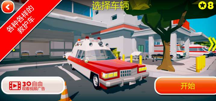 1、不断的完成救援任务还能解锁全新的救护车,挑战不同任务;